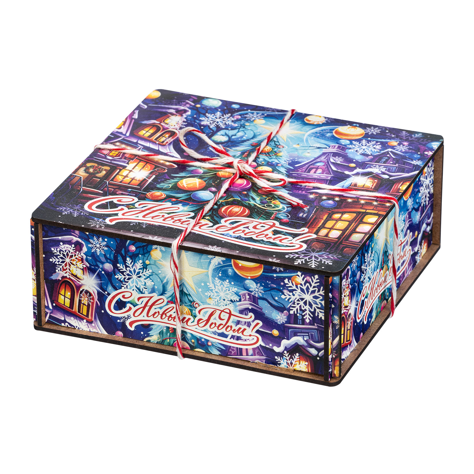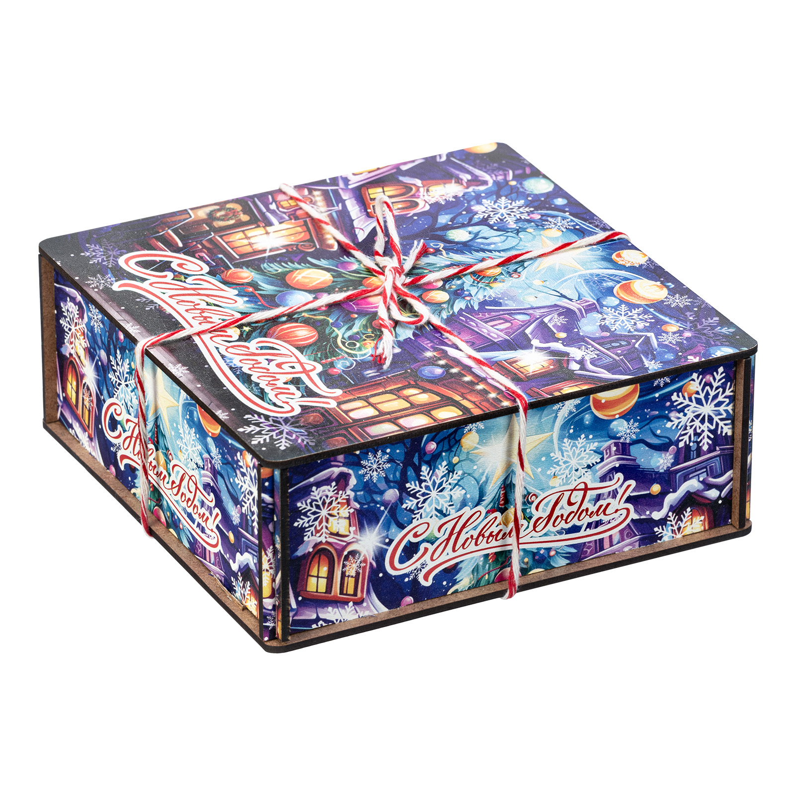 Интересный вариант новогоднего подарка – «Хрустальная сказка (Полезный состав)». Он представлен в разделе Дерево. Отлично подойдет на подарок в 2026 году с символом Лошадь. Внутри такого презента находится кондитерский набор весом 700 граммов.