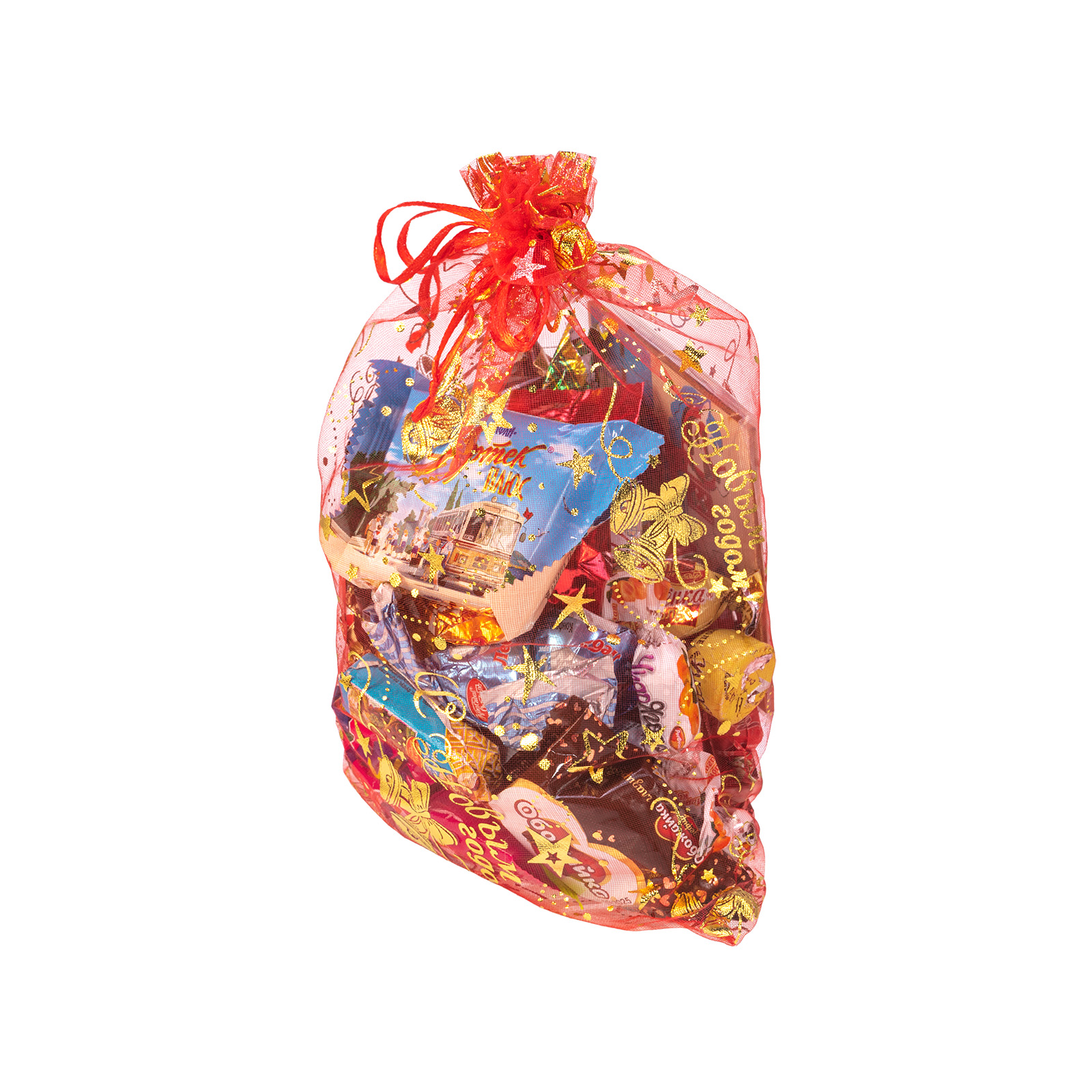 Формула идеального новогоднего сладкого подарка проста: привлекательная яркая упаковка и вкусные сладости внутри! Именно такими качествами и обладает подарочный набор “Колокольчики”! Это ярко-красный текстильный мешочек, украшенный со всех сторон золотистыми звездочками. Сверху он прочно перевязан маленькой аккуратной веревочкой, потянув за которую, вы откроите самый настоящий ларец с сокровищами. В мешочке бережно хранятся отборные лакомства под любые вкусовые предпочтения - даже самый привередливый сластена найдет здесь свой любимый десерт. Также в состав подарка входит небольшой памятный сувенир в виде символа наступающего года. Благодаря ему, праздничное настроение в вашем доме будет царить и после новогодних праздников!